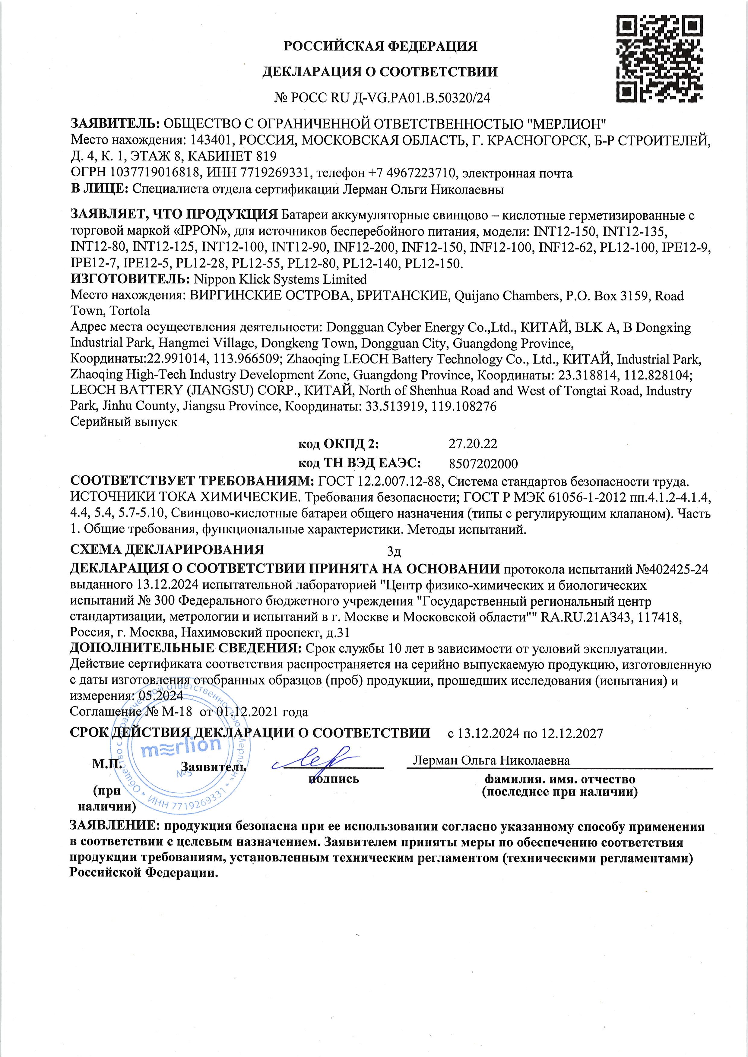 РОСС RU VG.РА01.В.50320/24 | 12.12.2024 | 11.12.2027 |
