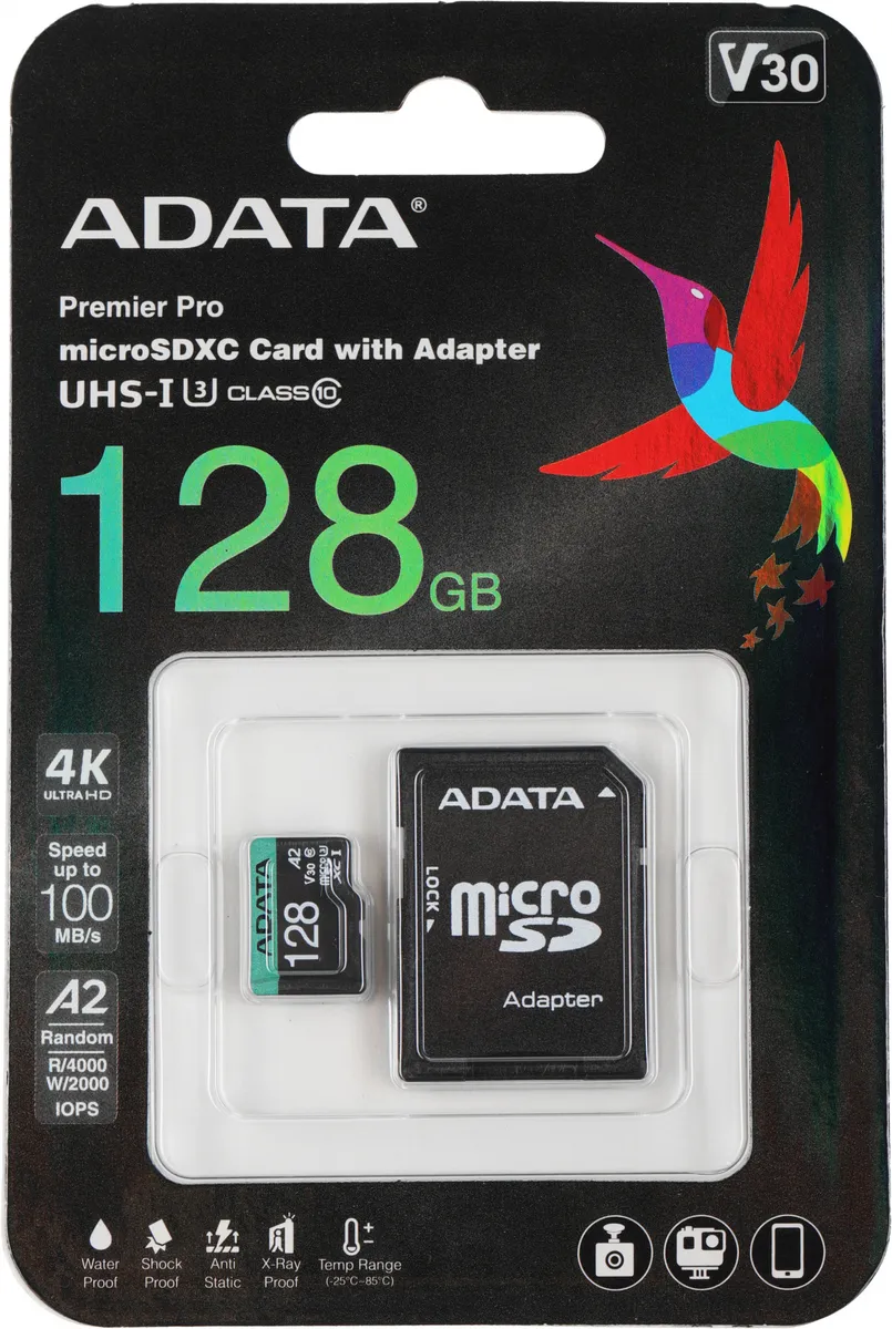 Флеш карта microSDXC 128GB A-Data AUSDX128GUI3V30SA2-RA1 Premier Pro + adapter (AUSDX128GUI3V30SA2-RA1)