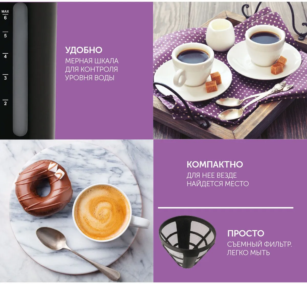 Кофеварка SC-CM33012 мощностью 750 Вт выполнена в черном цвете с металлической декорацией. Компактные размеры кофеварки позволят ей поместиться на даже самой малогабаритной кухне. -