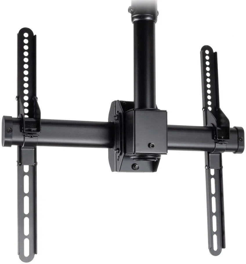 Потолочный кронштейн для LCD/LED телевизоров размером от 26 до 65 дюймов с максимальным весом до 55 кг. с возможностью крепления на наклонный потолок. Надежная стальная конструкция. Регулировка наклона 0-25 и углом поворота ±180 градусов. Максимальные кре -