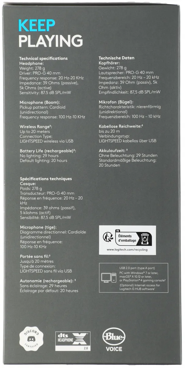 Беспроводной приемник LIGHTSPEED (USB-A), кабель для зарядки с разъемами USB-C и USB-А -