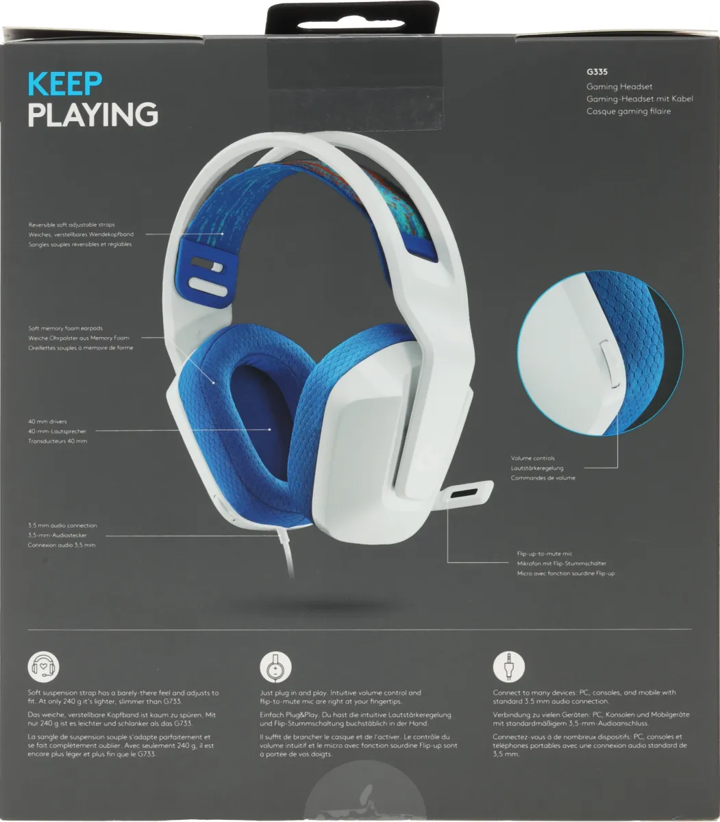 Наушники с микрофоном Logitech G335 белый/голубой 2м накладные оголовье (981-001018) (981-001018)