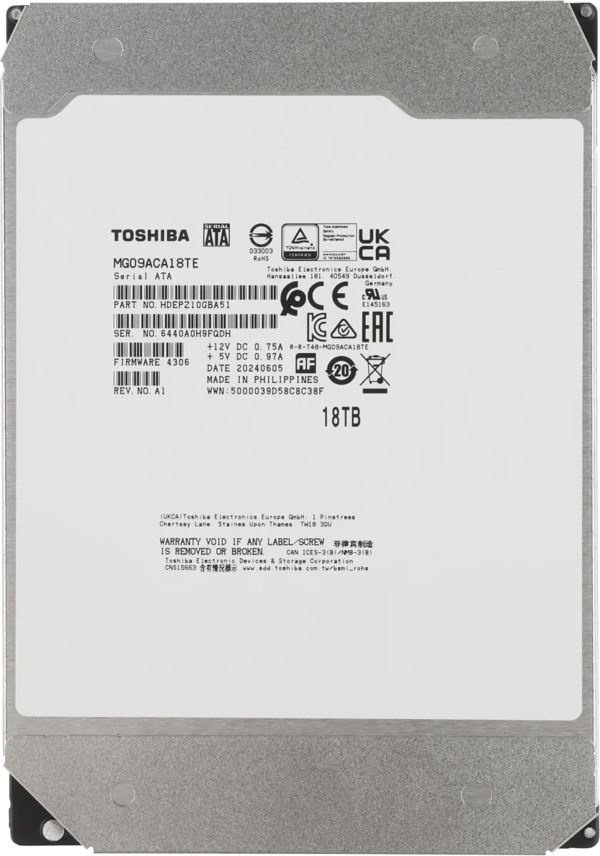 Жесткий диск Toshiba SATA-III 18TB MG09ACA18TE Server Enterprise Capacity 512E (7200rpm) 512Mb (MG09ACA18TE)