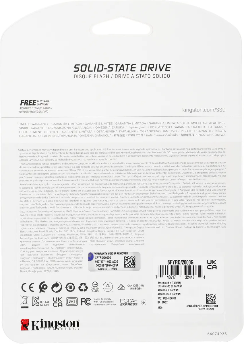 Накопитель SSD Kingston 2Tb SFYRD/2000G Fury Renegade M.2 2280 PCIe 4.0 x4 (SFYRD/2000G)