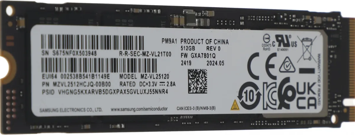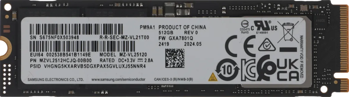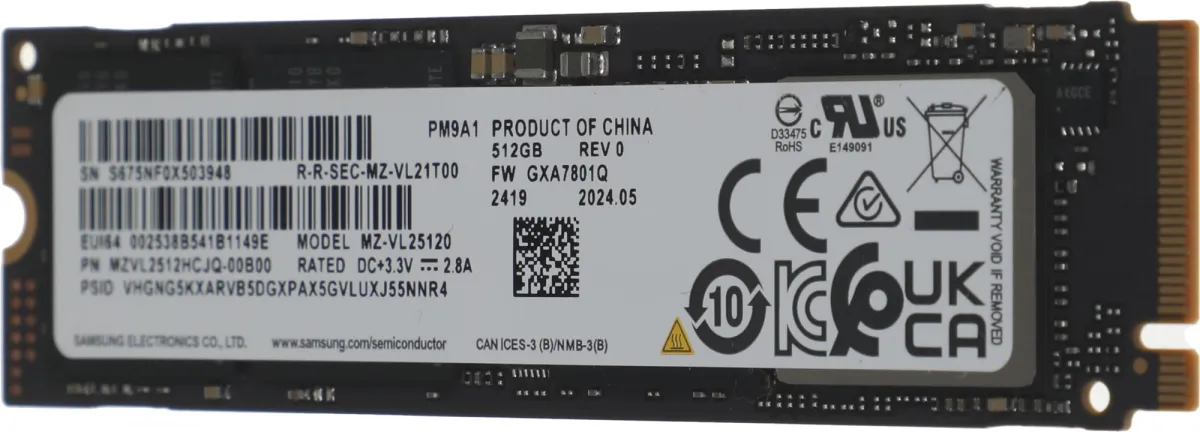 Накопитель SSD M.2 (NVMe, PCI-E 4.0 x4) 512Gb Samsung PM9A1 (R6900/W5000MB/s) 1year, (MZVL2512HCJQ-00B00)