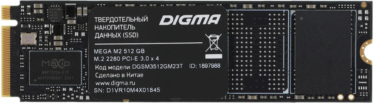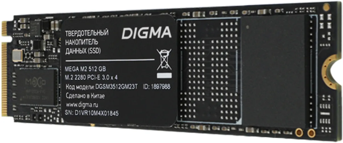Накопитель SSD Digma PCIe 3.0 x4 512Gb DGSM3512GM23T Mega M2 M.2 2280 (DGSM3512GM23T)
