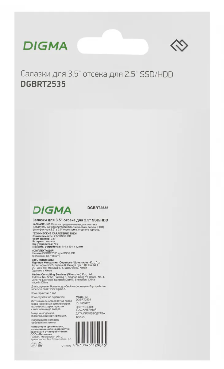 Салазки для 3.5" отсека Digma для HDD 2.5" (DGBRT2535)