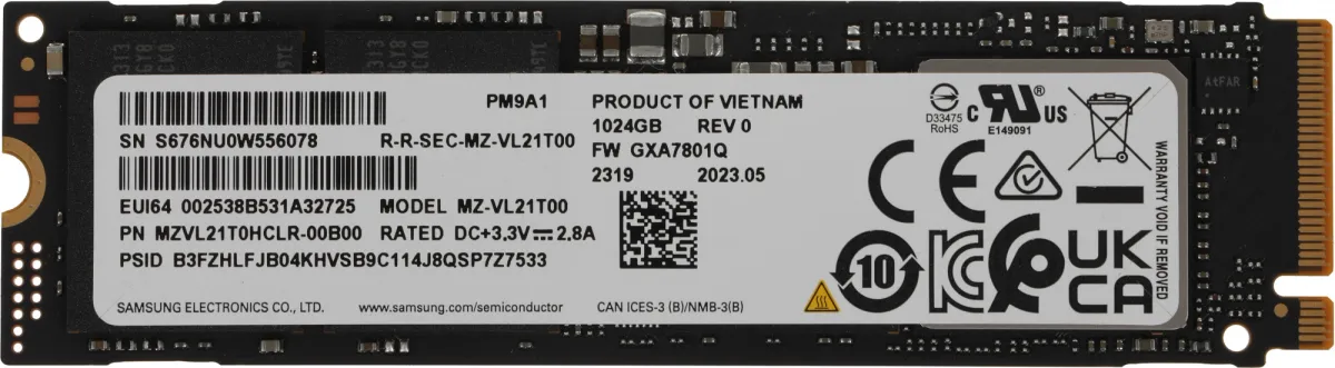 Накопитель SSD Samsung PCIe 4.0 x4 1Tb MZVL21T0HCLR-00B00 PM9A1 M.2 2280 OEM (MZVL21T0HCLR-00B00)