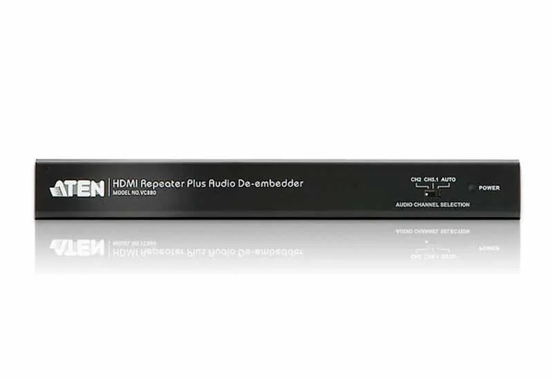 Устройство VC880 представляет собой повторитель HDMI со встроенным извлекателем звука, который извлекает и преобразует звуковой сигнал со входа HDMI. Это означает, что помимо увеличения дальности передачи звукового и видеосигнала HDMI, можно также выбират -