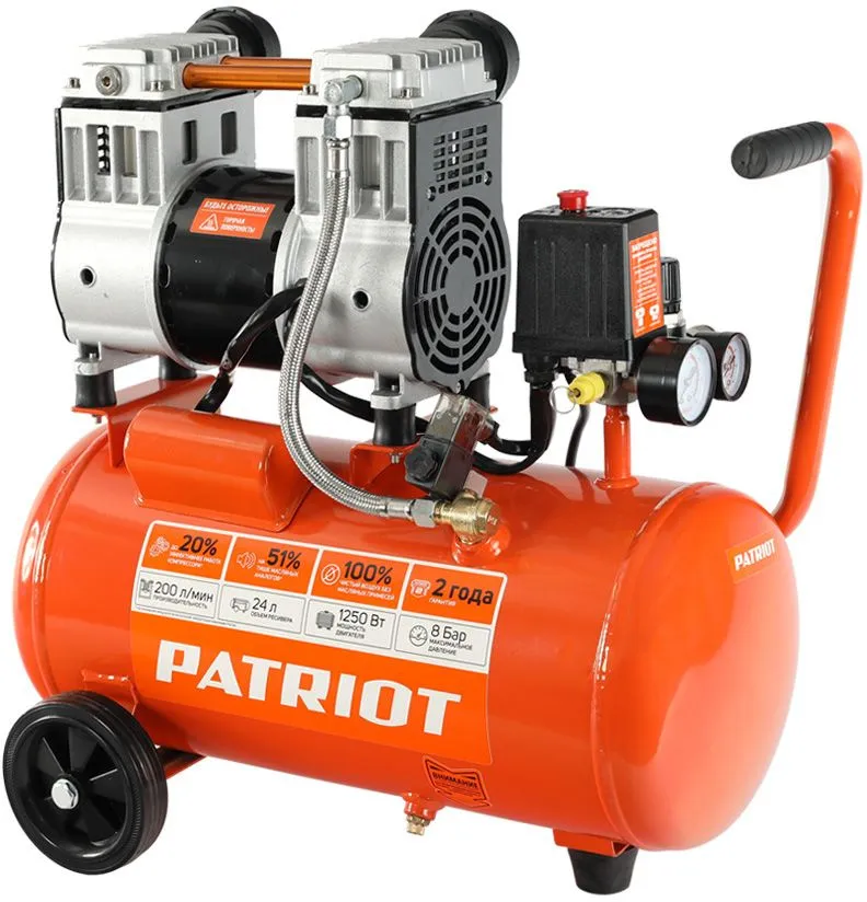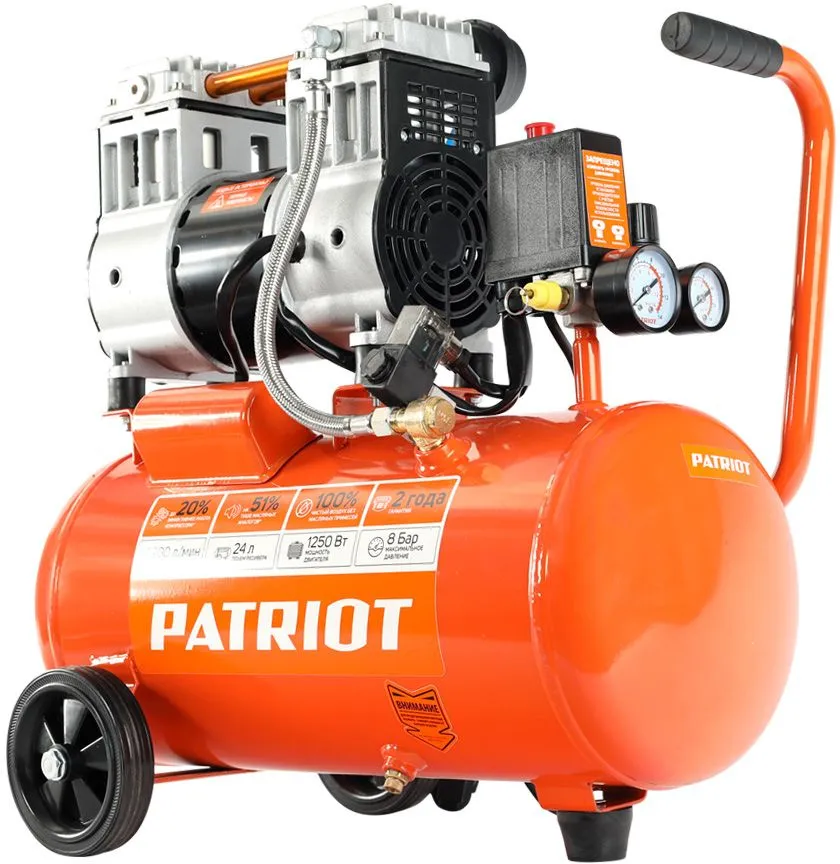 Компрессор поршневой Patriot WO 24-220 безмасляный 200л/мин 24л 1250Вт оранжевый (525301920)