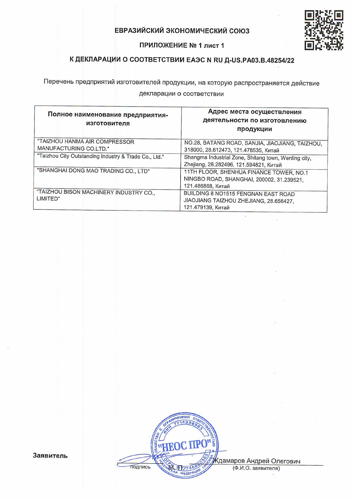 ЕАЭС N RU Д-US.РА03.В.48254/22 | 10.05.2022 | 09.05.2027 |
