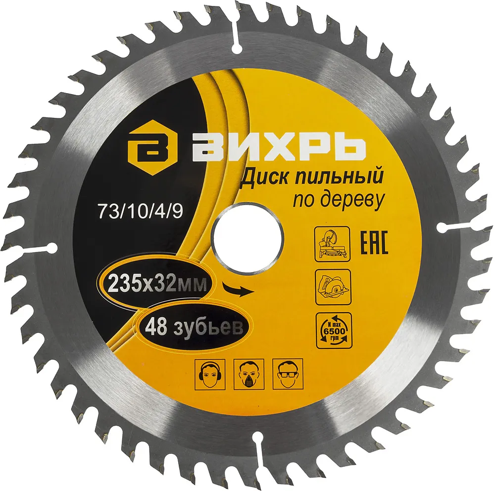 Диск пильный по дер. Вихрь 73/10/4/9 d=235мм d(посад.)=32мм (циркулярные пилы) (упак.:1шт) (73/10/4/9)