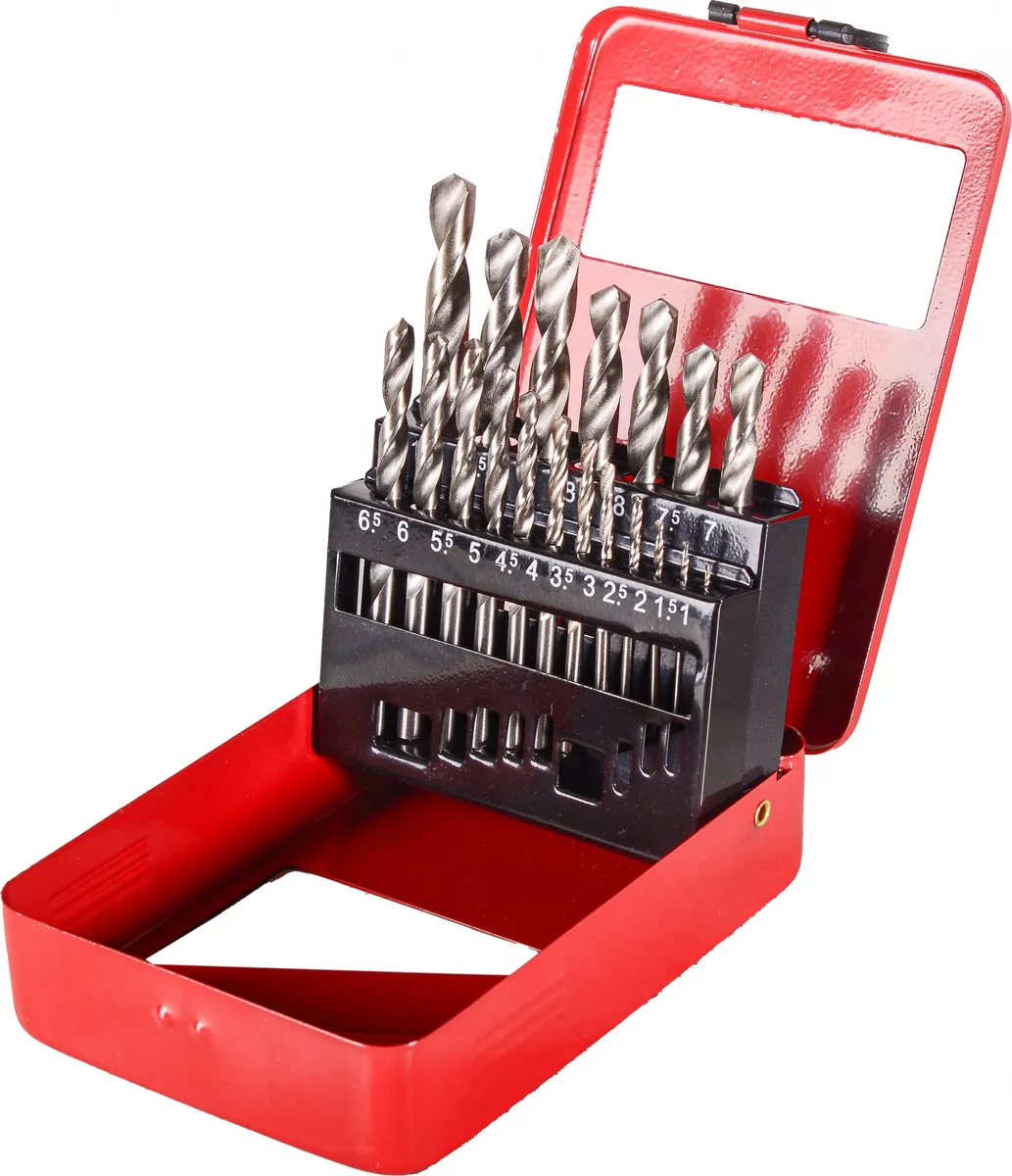 Набор сверл по металлу, 1-10 мм (через 0,5 мм.), HSS, 19 шт., металл. коробка, cвёрла по металлу HSS изготовлены из быстрорежущей стали методом винтового проката. Предназначены для сверления отверстий в металле.