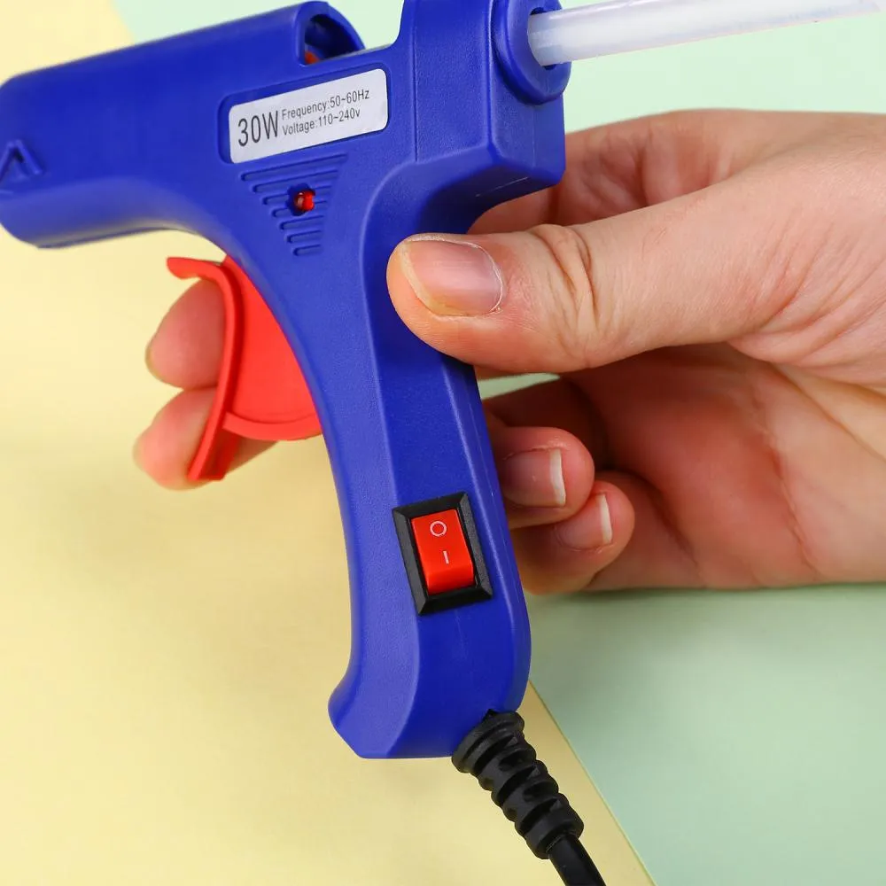В комплект входит подставка и 20 клеевых стержней диаметром 7 мм. Пистолет быстро нагревает клей, который способен склеить практически любой предмет, его можно использовать с любым материалом, включая дерево, ткань, камень, стекло, металл, пластик и пену. -