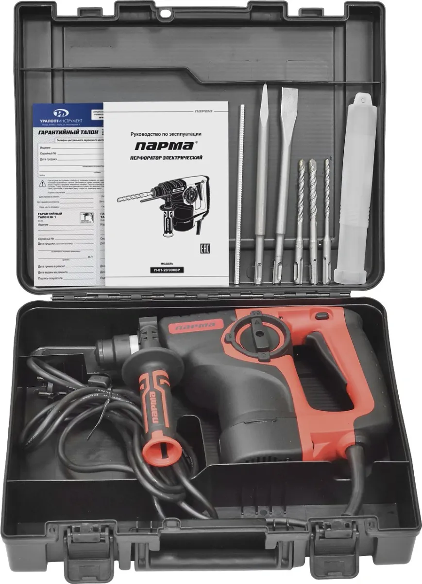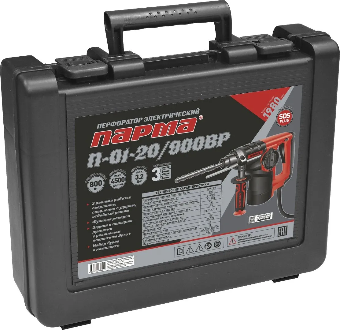 Перфоратор Парма П-01-20/900ВР патрон:SDS-plus уд.:3.2Дж 900Вт (кейс в комплекте) (02.027.00001)