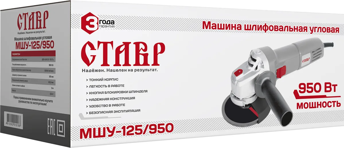 Углошлифовальная машина Ставр МШУ-125/950 950Вт 12000об/мин рез.шпин.:M14 d=125мм (СТ125-950) (СТ125-950)