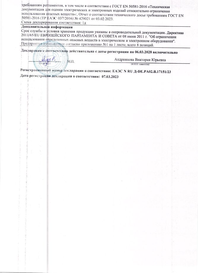 ЕАЭС N RU Д-DE.РА02.В.17151/23 | 06.03.2023 | 05.03.2028 |