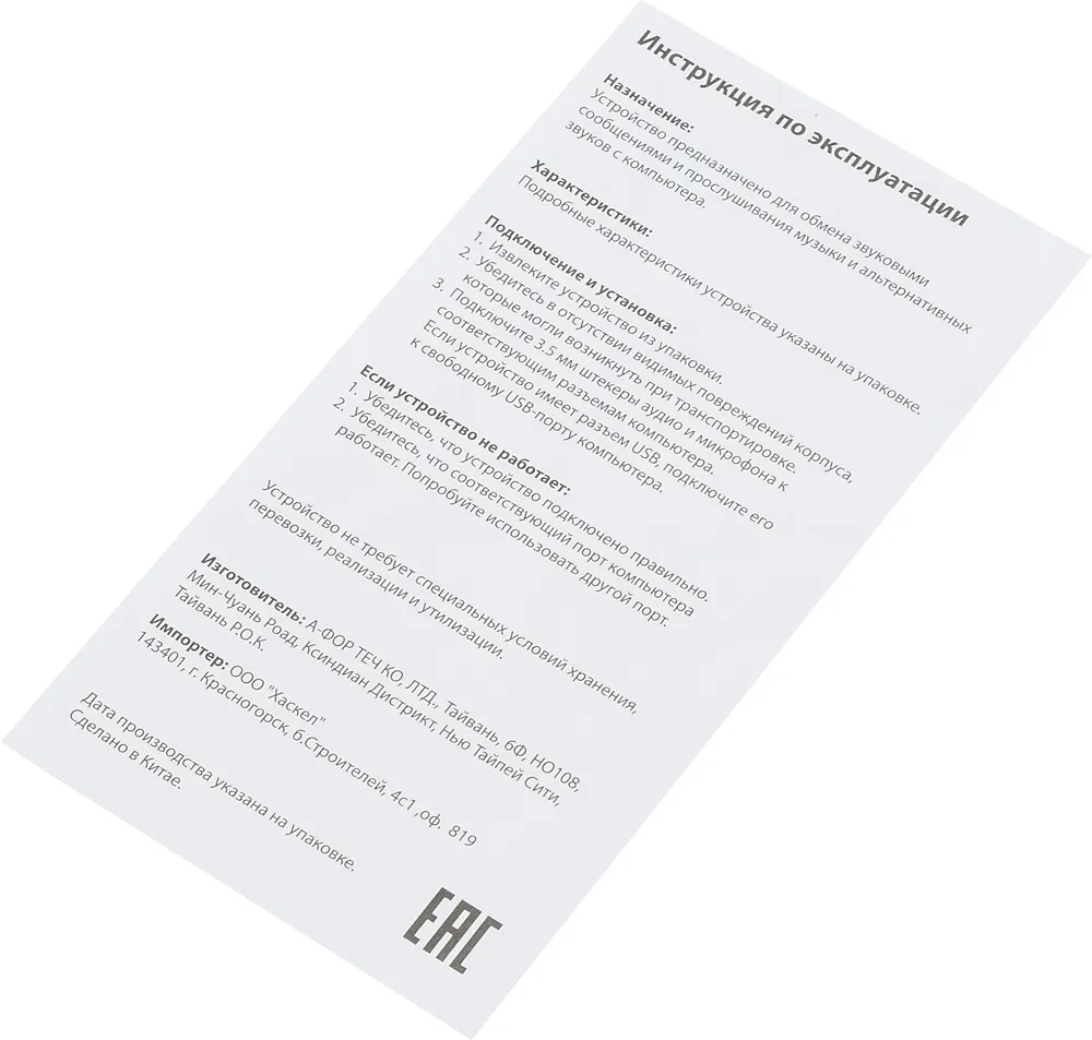 Тип гарнитуры