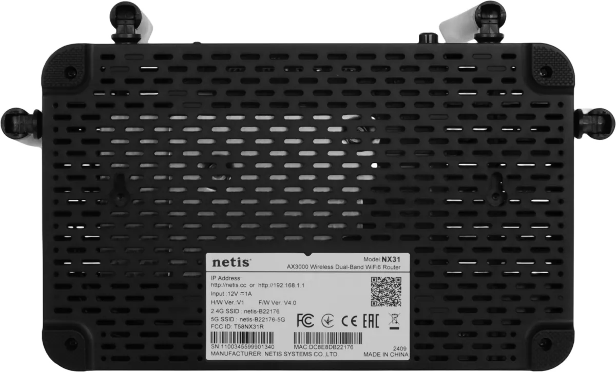Роутер беспроводной Netis NX31 AX3000 10/100/1000BASE-TX черный