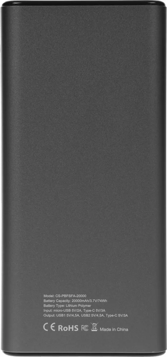 | Мобильный аккумулятор Cactus CS-PBFSFA-20000 20000mAh 22.5W 4.5A 2xUSB-A/USB-C серый | ЕАЭС KG HK С.417/043.02.05181 | 06.11.2024 | 24.08.2029 |
