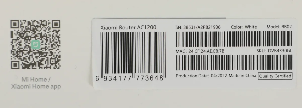 Маршрутизатор Xiaomi Router AC1200 EU (DVB4330GL) AC1200 10/100/1000 белый (DVB4330GL)