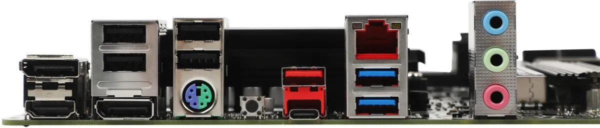 2хUSB 3.2 Gen 2 Type-C, USB 3.2 Gen 2 Type-A, 4xUSB 3.2 Gen 1, 8хUSB 2.0/1.1, HDMI, 2хDisplayPort, RJ-45. PS/2, 3хАудио -