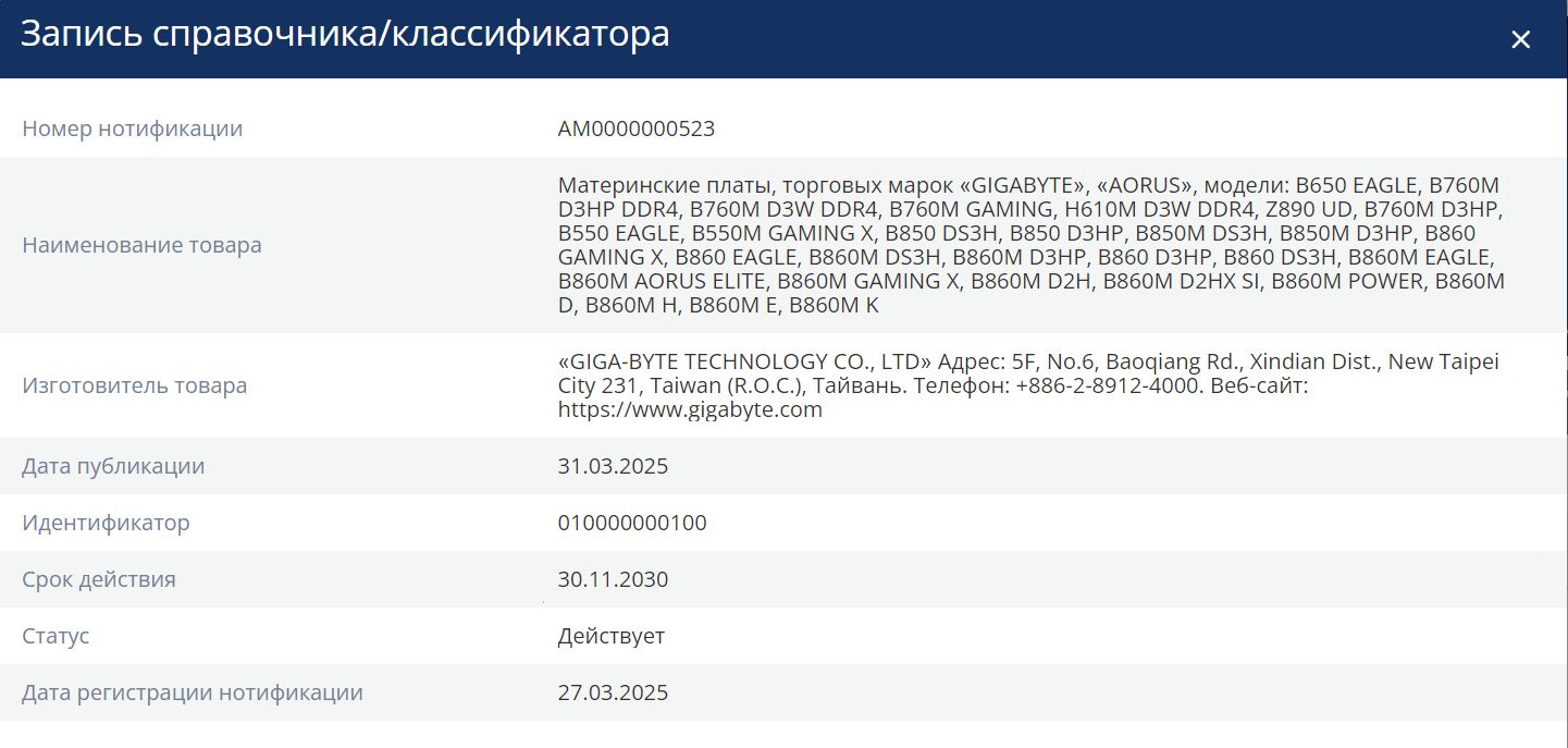 | Материнская плата Gigabyte B850M DS3H SocketAM5 AMD B850 4xDDR5 mATX AC`97 8ch(7.1) 2.5Gg RAID+HDMI+DP | НИП KZ .ФСБ.0000008894 | 19.09.2024 | 30.12.2030 |