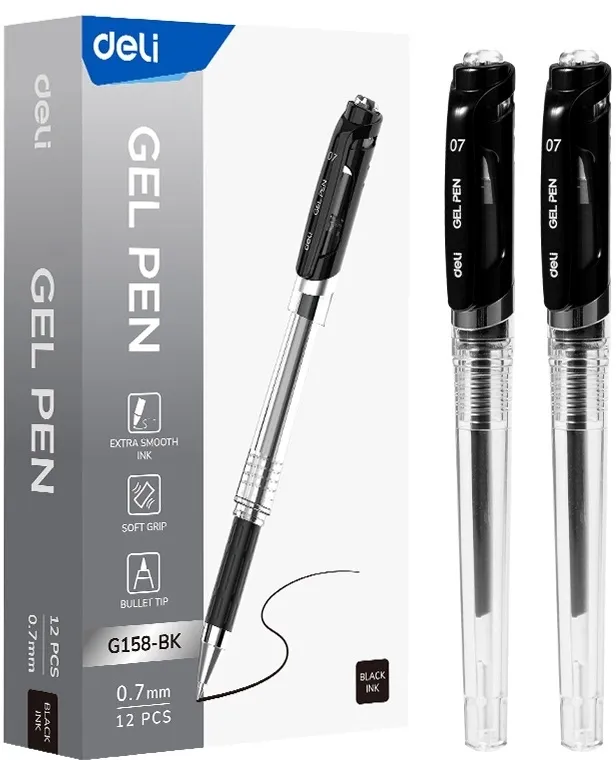 Ручка гелев. Deli EG158-BK прозрачный d=0.7мм черн. черн. резин. манжета (EG158-BK)