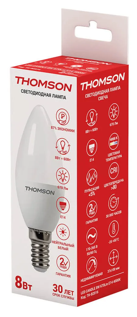Лампа светодиодная Thomson Candle TH-B2016 8Вт цок.:E14 свеча (TH-B2016)