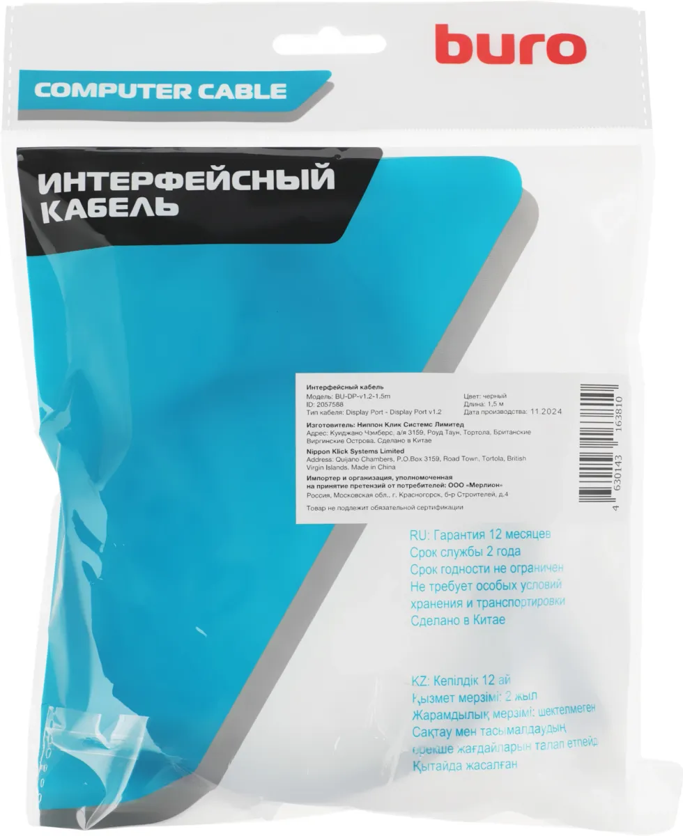 Кабель Buro BU-DP-v1.2-1.5m ver1.2 DisplayPort (m) DisplayPort (m) (BU-DP-V1.2-1.5M)