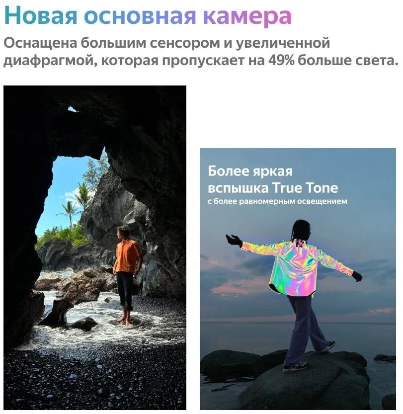 режим "Таймлапс" со стабилизацией изображения, видео "Таймлапс" в Ночном режиме, функция QuickTake, аудиозум, вспышка True Tone, следящий автофокус, возможность съёмки фотографий во время записи видео, увеличение при воспроизведении, запись стереозвука -
