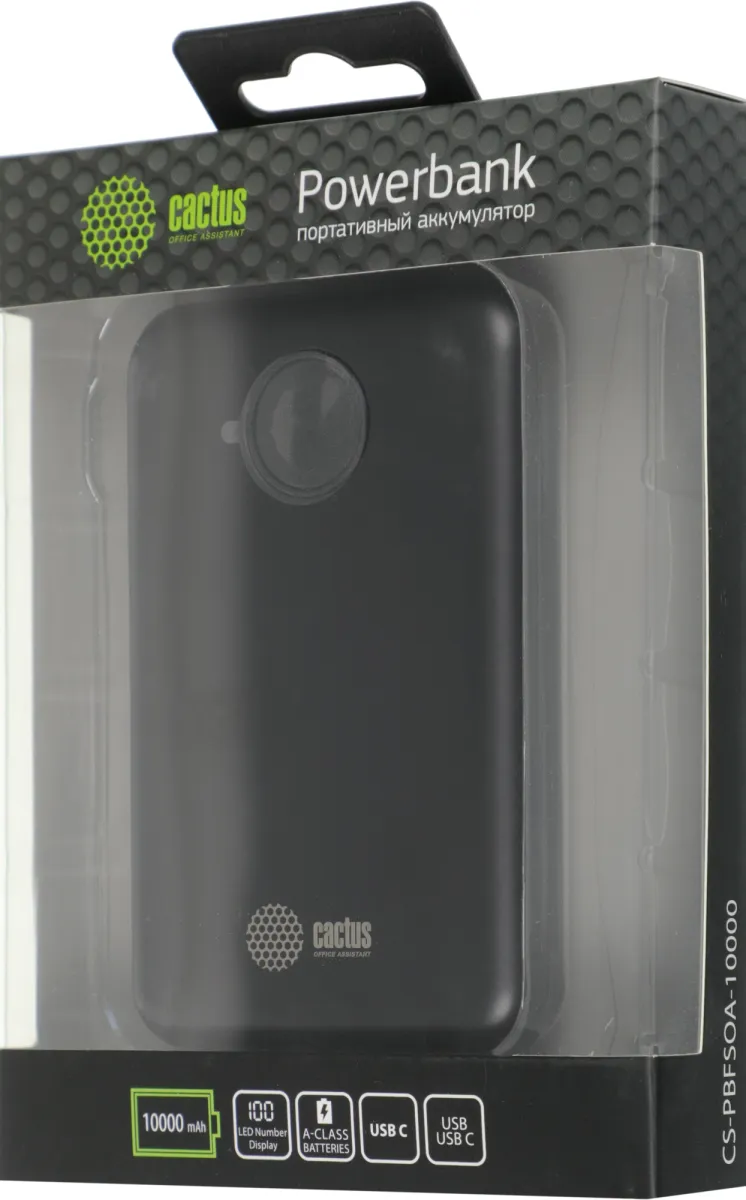Мобильный аккумулятор Cactus CS-PBFSOA-10000 10000mAh 22.5W 4.5A USB-A/USB-C черный (CS-PBFSOA-10000)