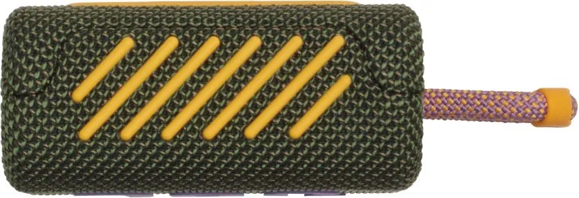 В ультракомпактном стильном корпусе JBL Go 3 удачно сочетаются разноцветная ткань и выразительные детали — колонка выглядит так же великолепно, как и звучит. -