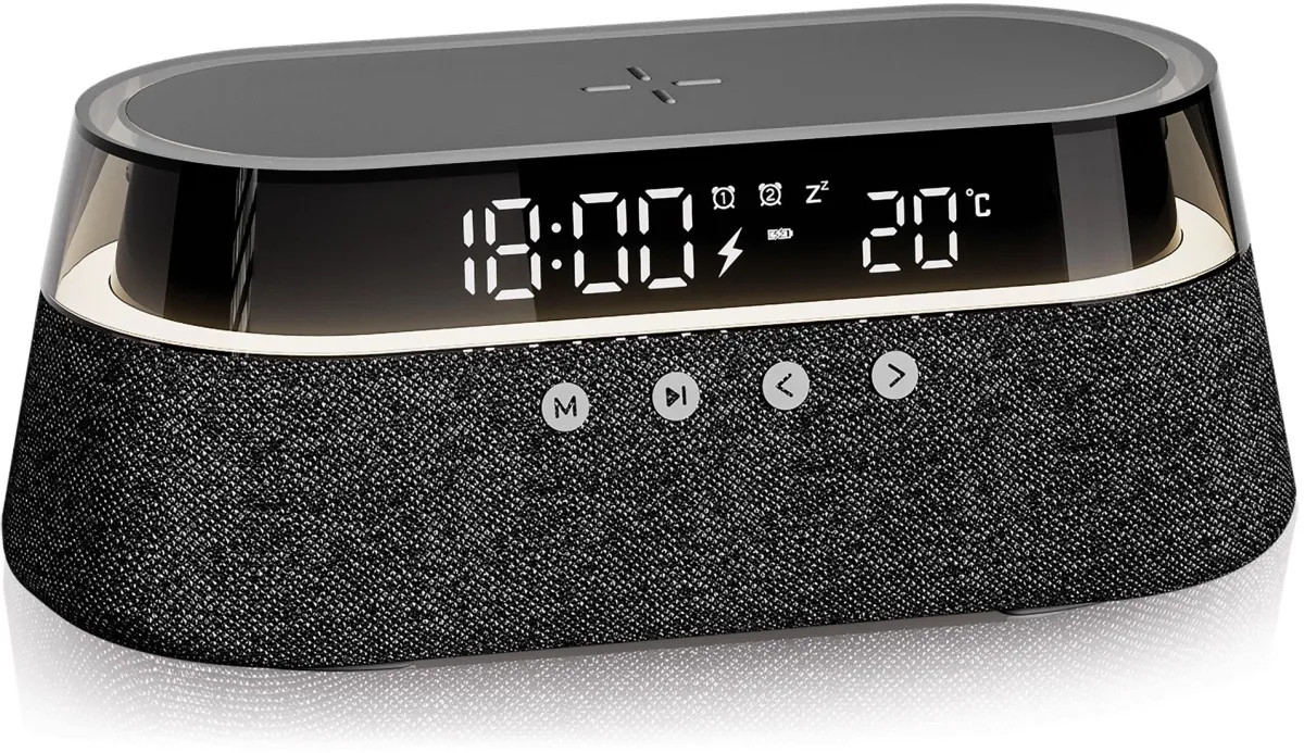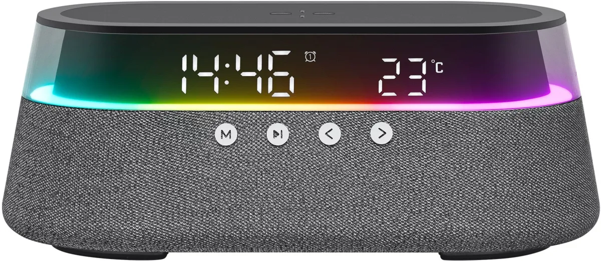 Ночник и часы с регулируемой подсветкой, будильник, радио, беспроводная зарядка для ваших устройств и мощная музыкальная колонка собраны в одном уникальном гаджете. -