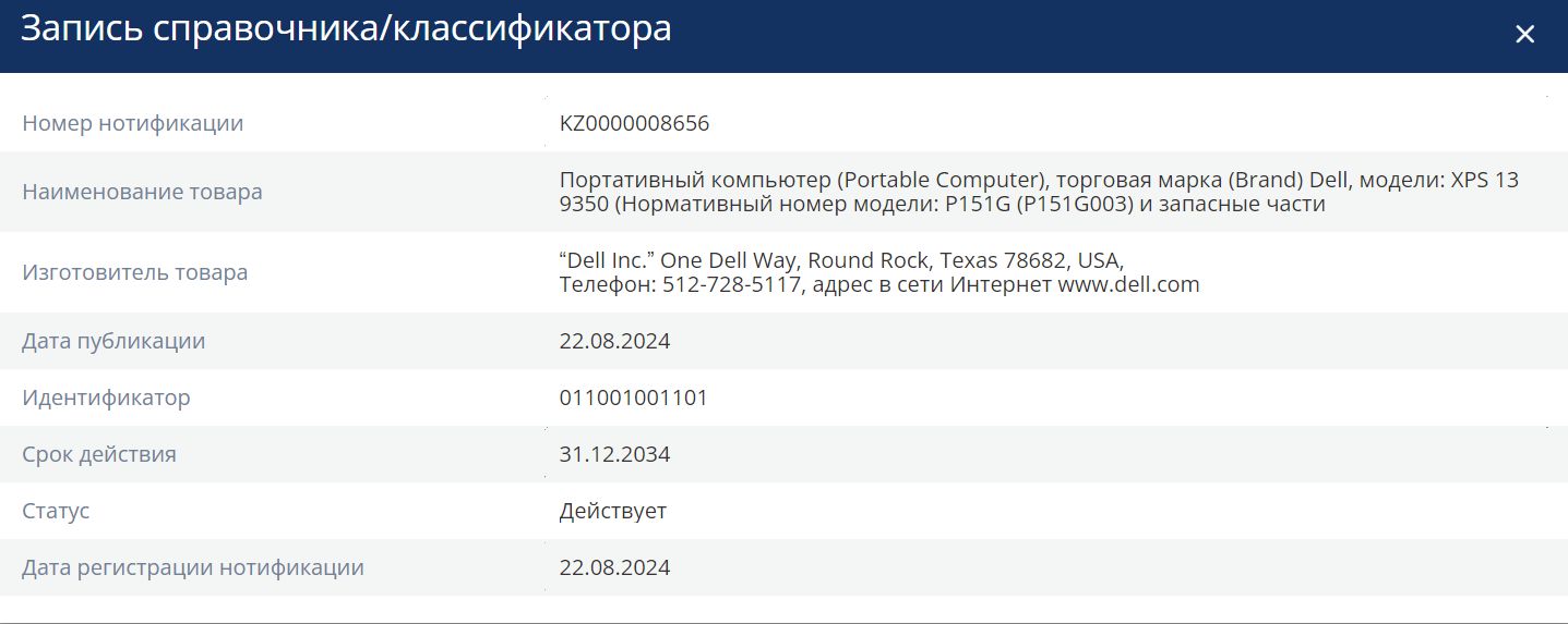 | Ультрабук Dell XPS 13 9350 Core Ultra 7 268V 32Gb SSD1Tb Intel Arc 140V 13.4" OLED Touch 3K (2880x1800) Windows 11 Pro silver WiFi BT Cam (9350-7331) | НИП KZ .ФСБ.0000008656 | 21.08.2024 | 30.12.2034 |