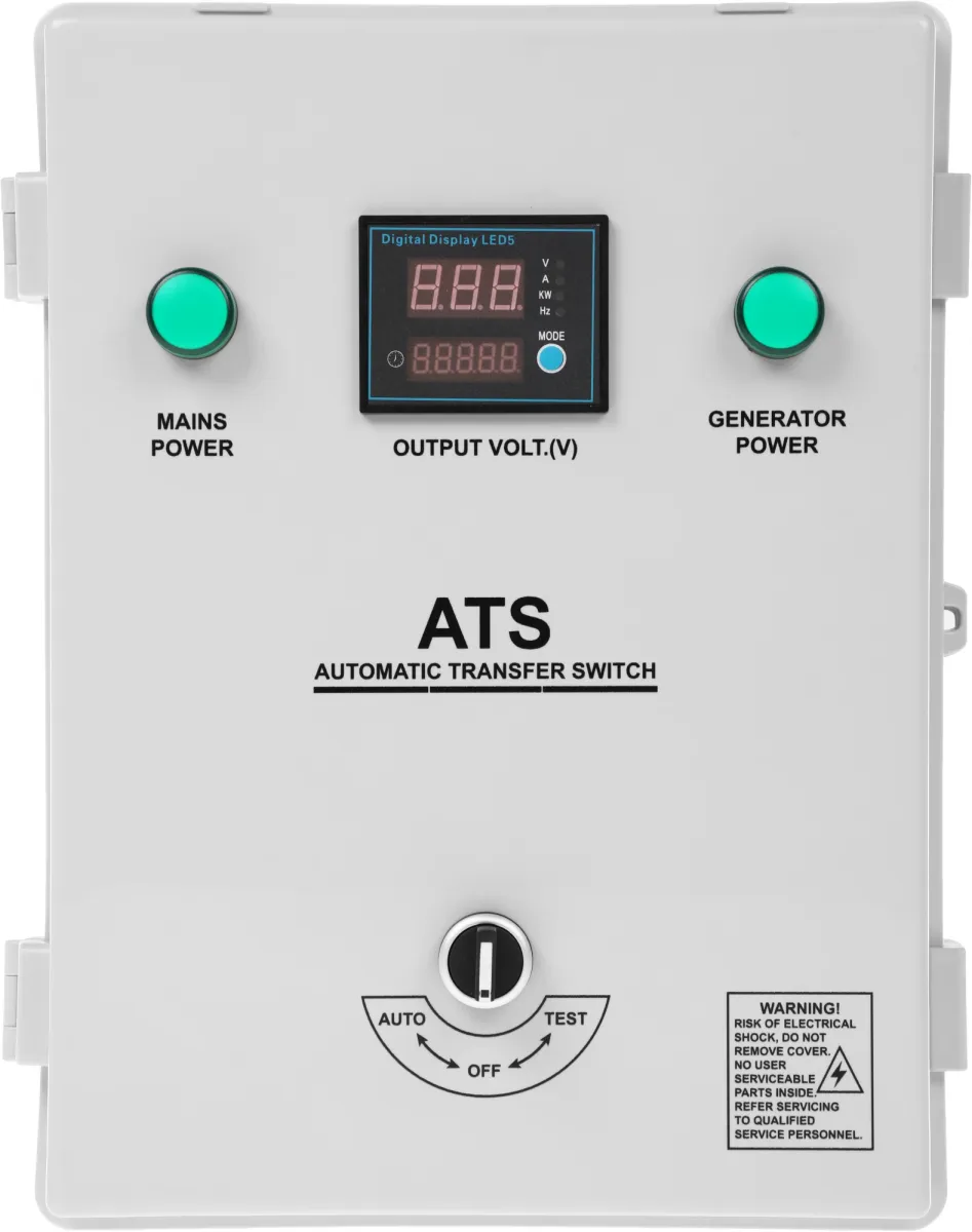 Система ATS – Автоматическая Система Переключения предназначена для переключения питания основной сети электроснабжения на ваш генератор для резервного (аварийного) питания вашей домовой электросети. Ваш генератор обязательно должен быть оборудован входом -