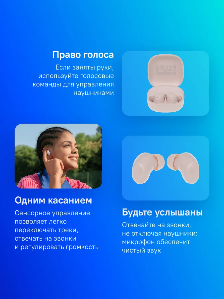 Беспроводные внутриканальные наушники; передача сигнала–Bluetooth 5.4; Степень пылевлагозащиты IP-IPX4; Мин./макс. воспроизводимая частота 20 Гц/20000 Гц; Сопротивление (импеданс)-16 Ом; Мощность-10 мВт; Тип индикатора заряда-LED; номинальный вход/выход к -