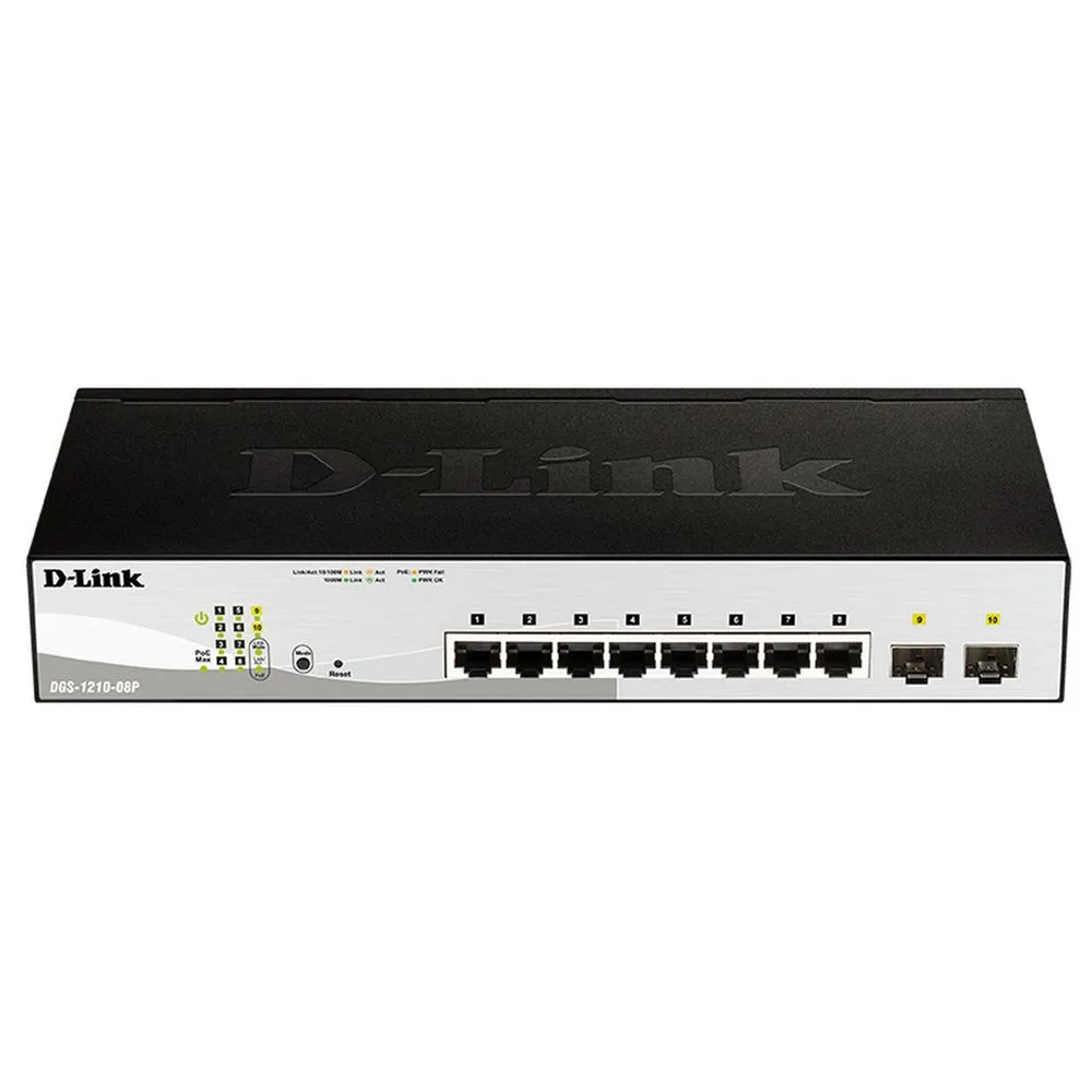 Коммутатор D-Link DGS-1210-08P DGS-1210-08P/G3A (L2) 8x1Гбит/с 2SFP 8PoE 65W настраиваемый (DGS-1210-08P/G3A)