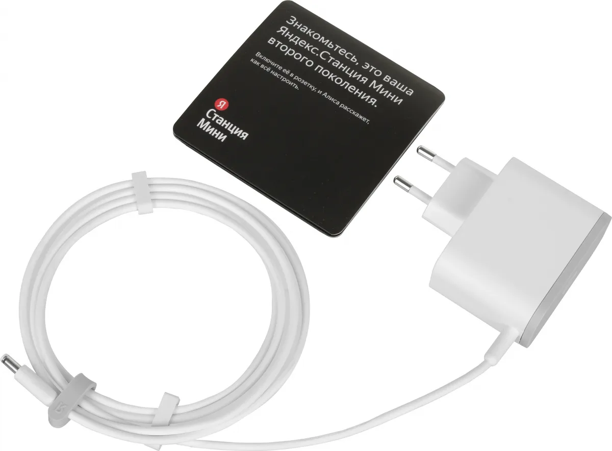 Умная колонка Яндекс Станция Мини без часов с Алисой, адаптер питания, руководство пользователя -