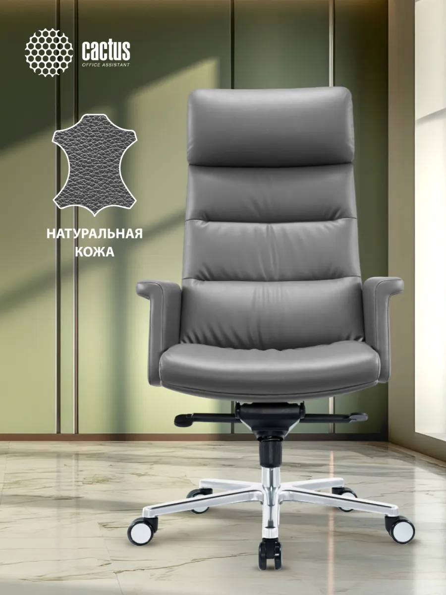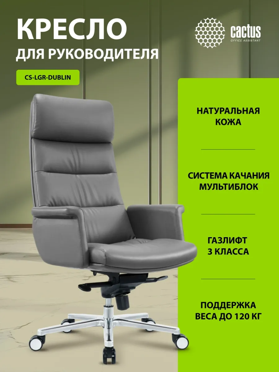 Кресло руководителя Cactus CS-LGR-DUBLIN темно-серый сиденье темно-серый кожа крестов. алюминий (CS-LGR-DUBLIN)