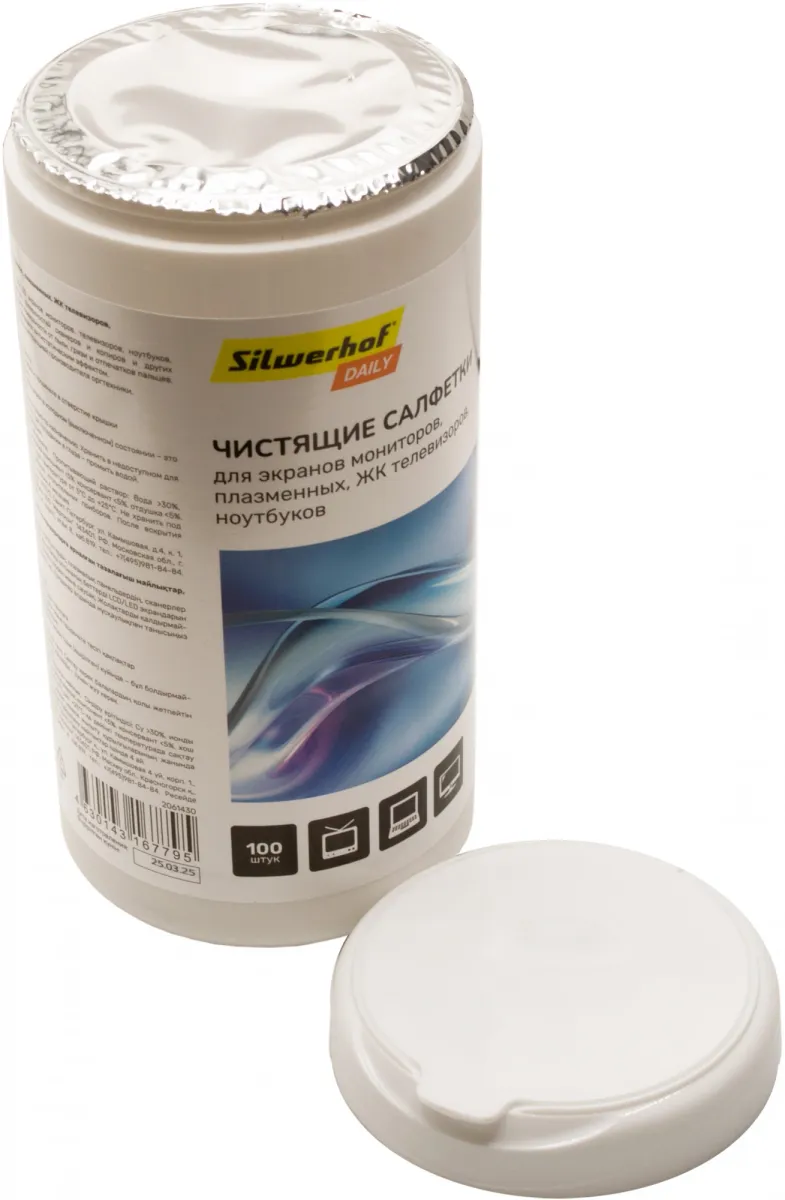 Салфетки Silwerhof DAILY для экранов мониторов/плазменных/ЖК телевизоров/ноутбуков туба 100шт влажных (ML2061430)