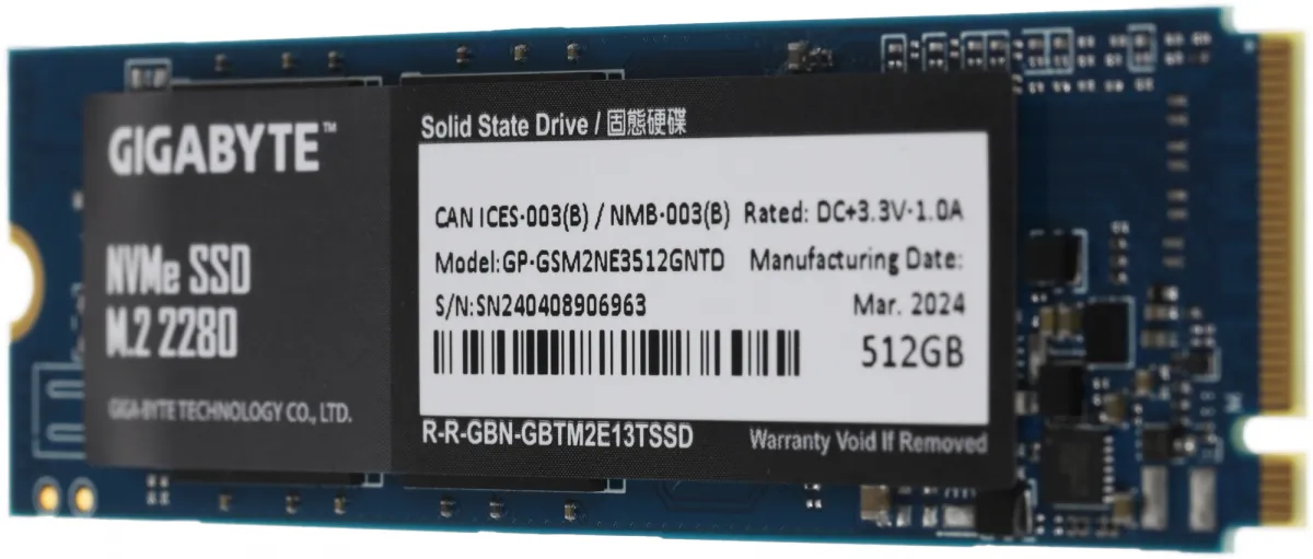 Накопитель SSD Gigabyte PCIe 3.0 x4 512Gb GP-GSM2NE3512GNTD NVMe M.2 2280 (GP-GSM2NE3512GNTD)
