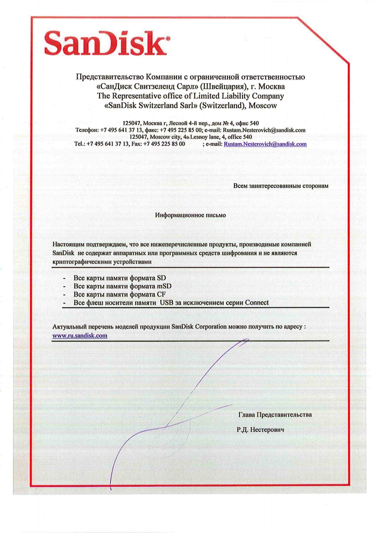Для получения более подробной информации по продукции SANDISK пожалуйста, обращайтесь к нашим менеджерам по тел. +7 (495) 663-88-00 или по e-mail info@tekhland.ru