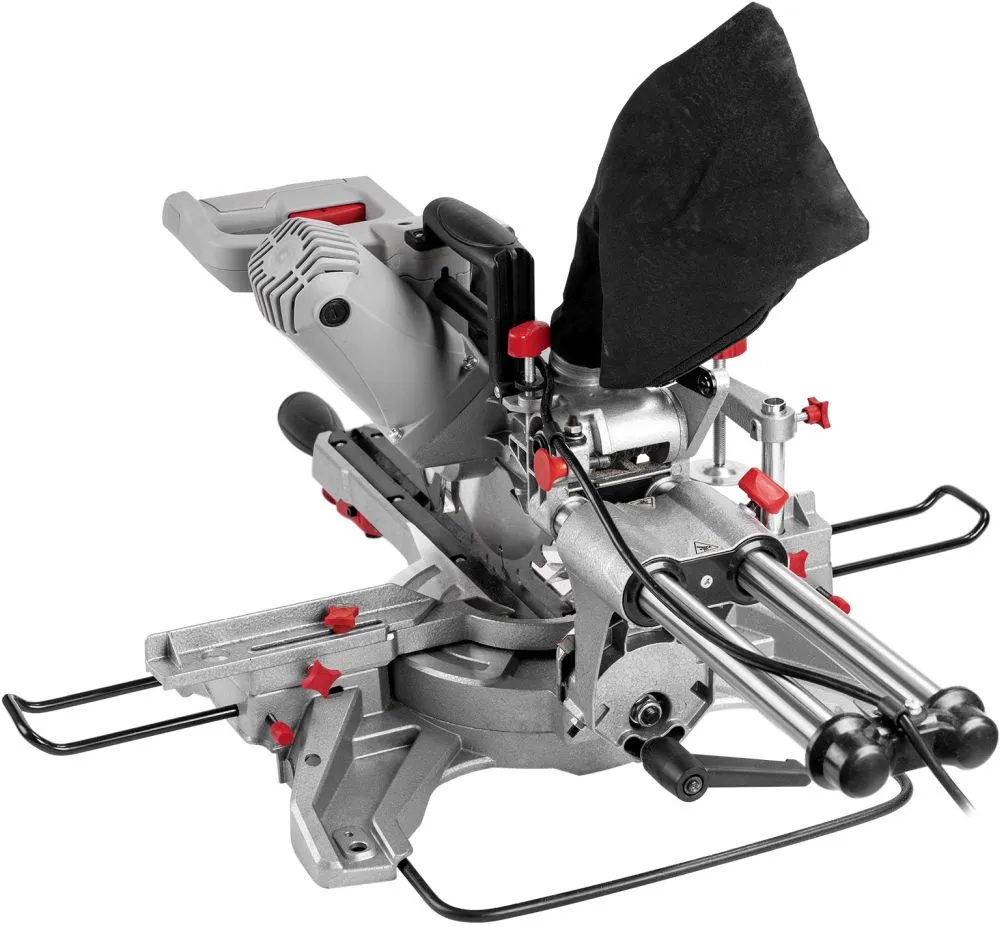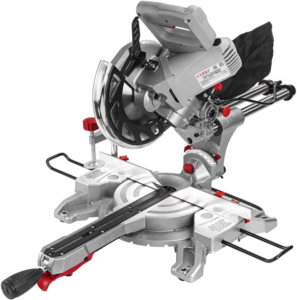 Пильный диск, зажим, шестигранный ключ, мешок для сбора опилок, приспособление для удлинения рабочего стола (2 шт.) -