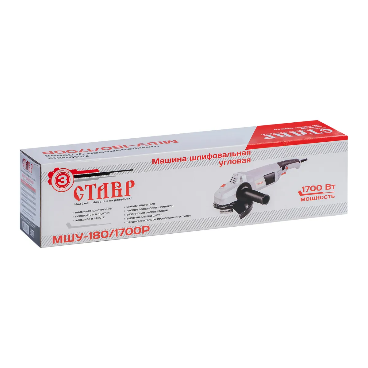 Углошлифовальная машина Ставр МШУ-180/1700Р 1700Вт 8500об/мин рез.шпин.:M14 d=180мм (СТ180-1700РМШУ) (СТ180-1700РМШУ)