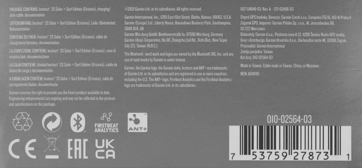 Часы Instinct 2s Solar, Кабель зарядки/передачи данных, Документация -