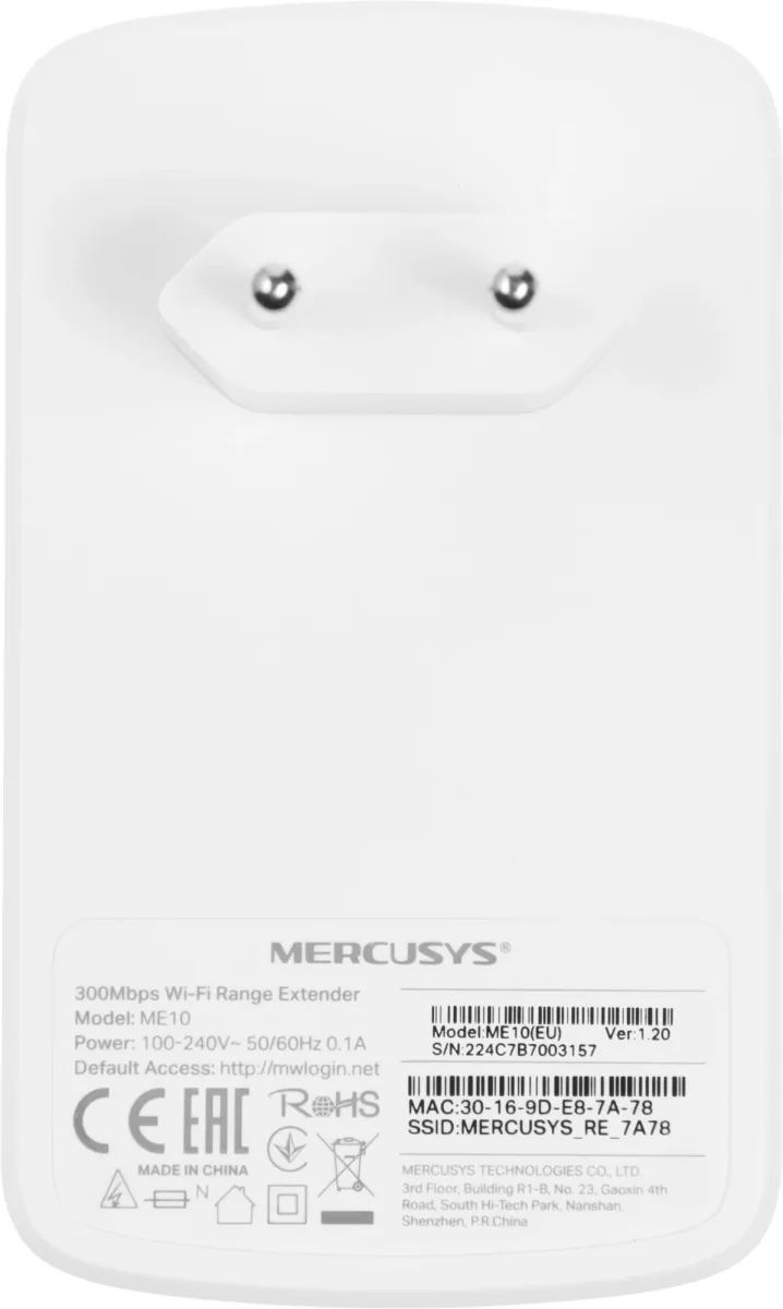 Повторитель беспроводного сигнала Mercusys ME10 N300 10/100BASE-TX (ME10)