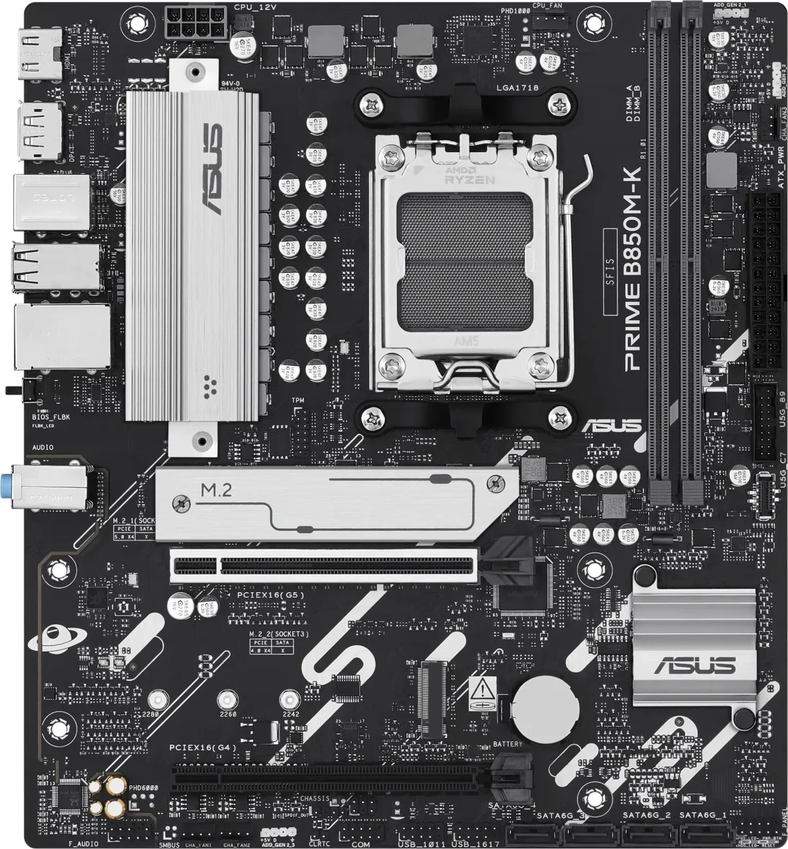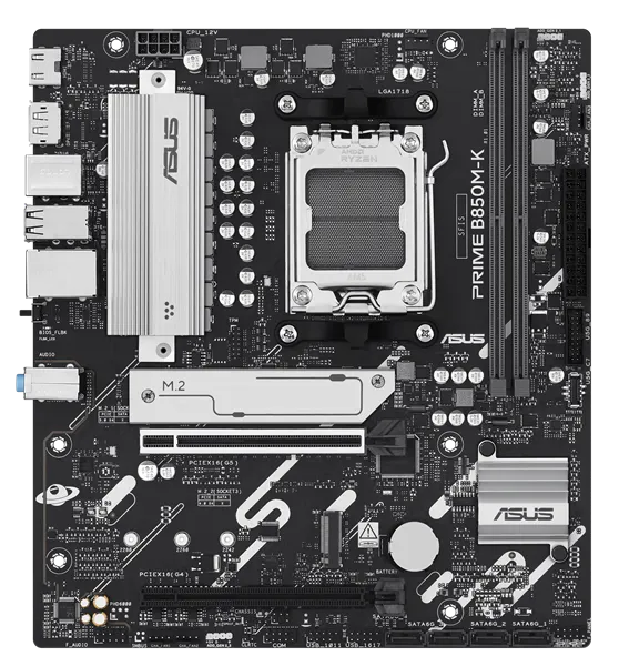 ASUS PRIME B850M-K, AM5, B850, 2*DDR5, 4*SATA, 2*M.2, 4*USB 3.2, 4*USB 2.0, (PRIME B850M-K)