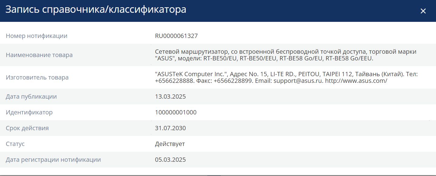 | Роутер беспроводной Asus RT-BE50 BE3600 10/100/1000/2500BASE-T | НИП RU .ФСБ.0000061327 | 04.03.2025 | 30.07.2030 |