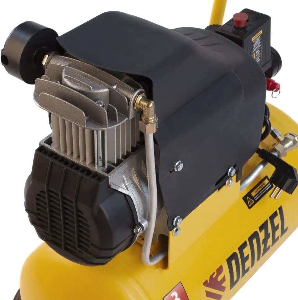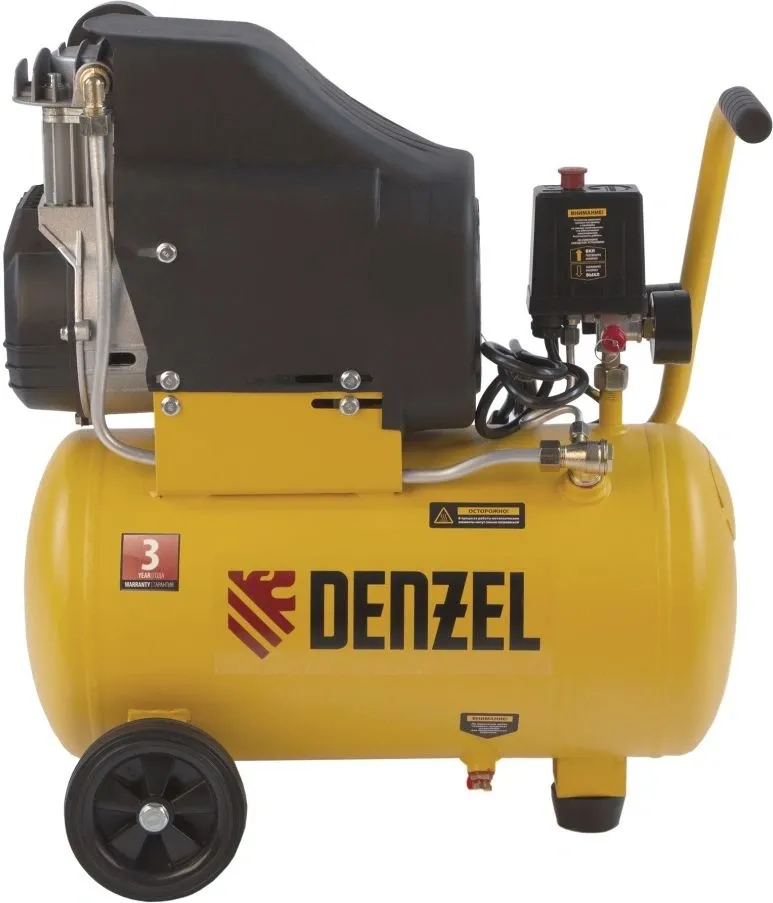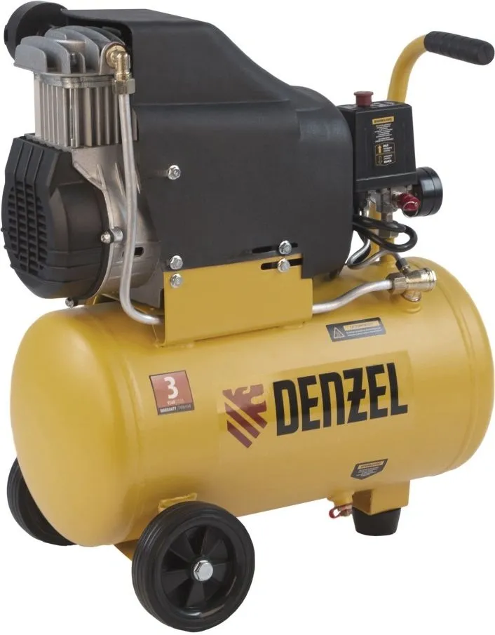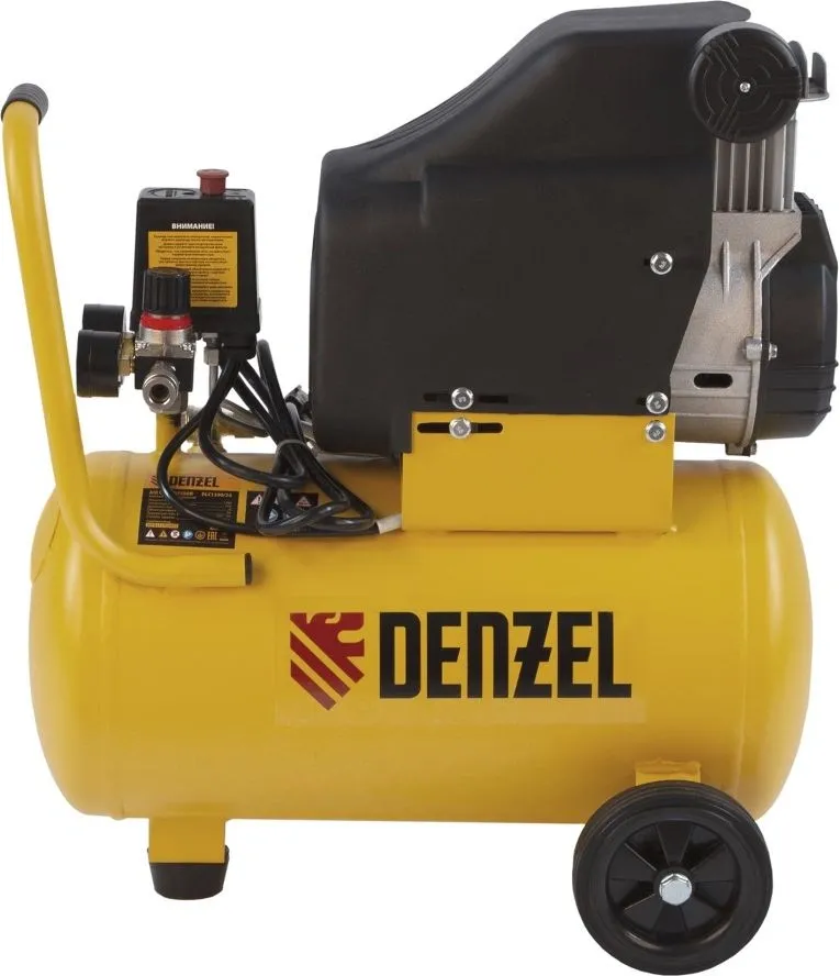 Компрессор Denzel DLC1300/24 с производительностью на входе 206 л/мин обеспечивает на выходе чистый сжатый воздух без примесей масла, что позволяет использовать его при окрашивании, креплении паркета и вагонки, продувке электронной техники, накачке шин. -